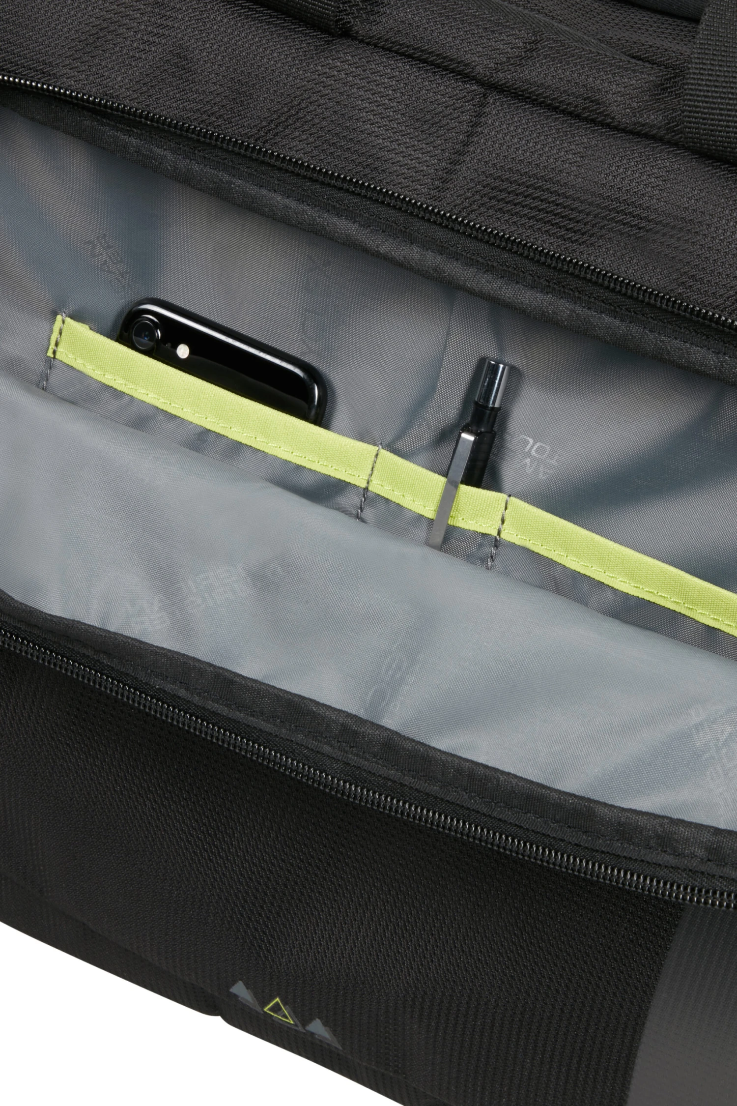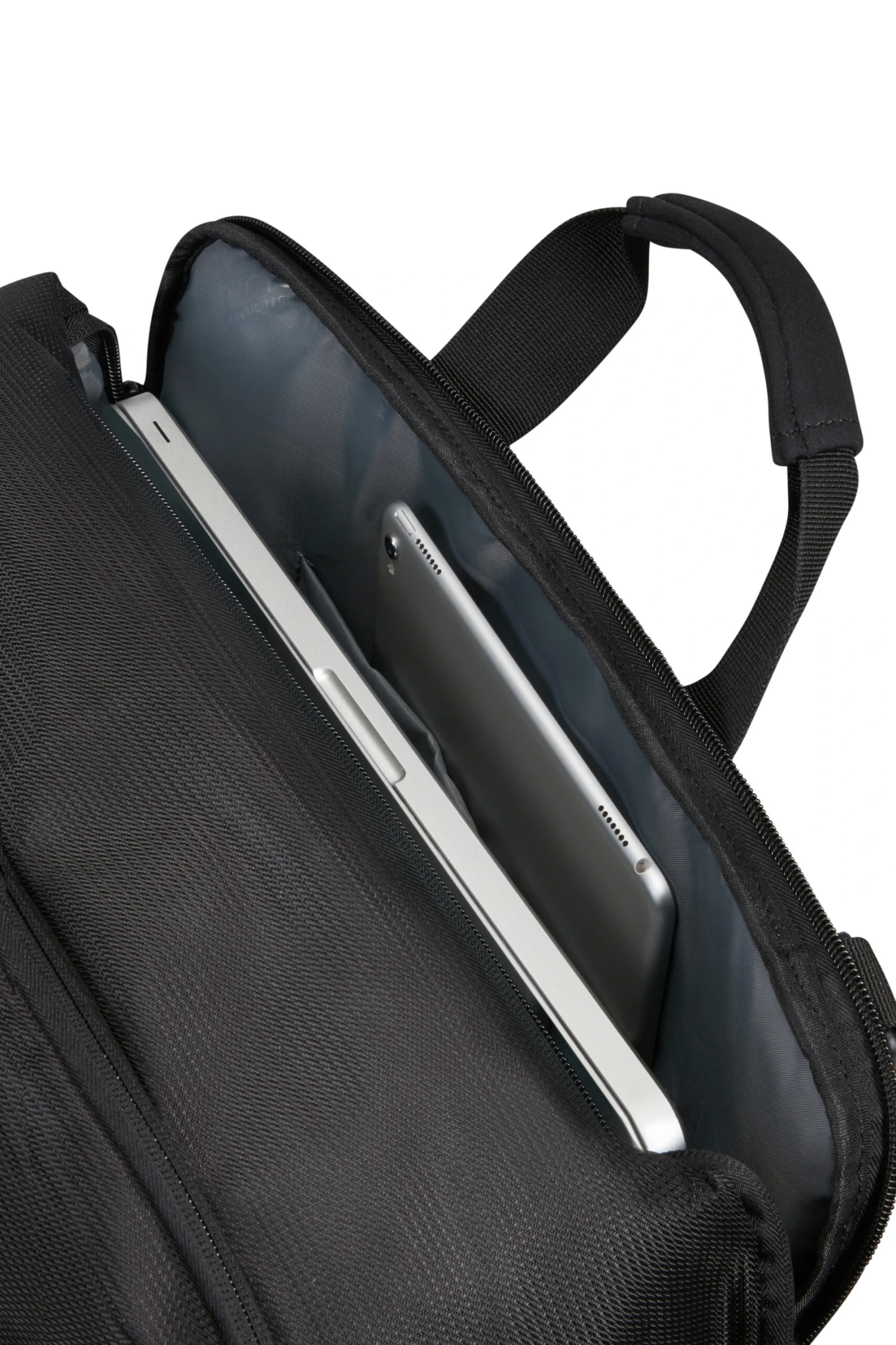 Bolsa de viaje de American Tourister modelo Work->E en color negro y en tamaño 15,6″ hecho en PET con materiales reciclados. Perfectamente válido para meter debajo dela siento, en vuelos economicos