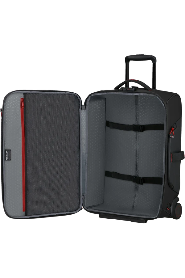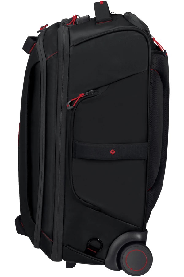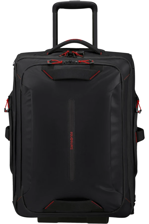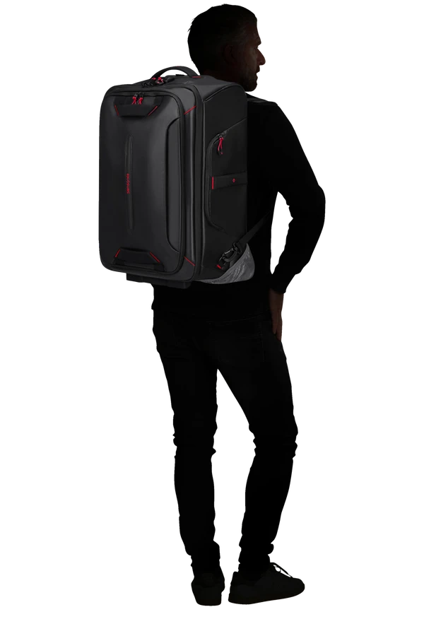 Mochila – Bolsa de viaje de Samsonite en color negro en tamaño de cabina con 55 cm y dos ruedas de apoyo muy útil para viajes de negocios..