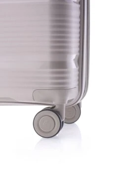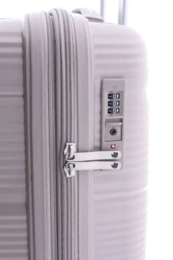 Maleta de cabina ligera en color beige de la marca Gladiator, realizada con polipropileno reciclado; la maleta esta apoyada en 4 ruedas dobles multidireccionales. Debido al tamaño y la versatilidad, esta maleta de cabina es la adecuada para tus viajes cortos y sus medidas se ajustan a las que tienen las compañÃas low cost.