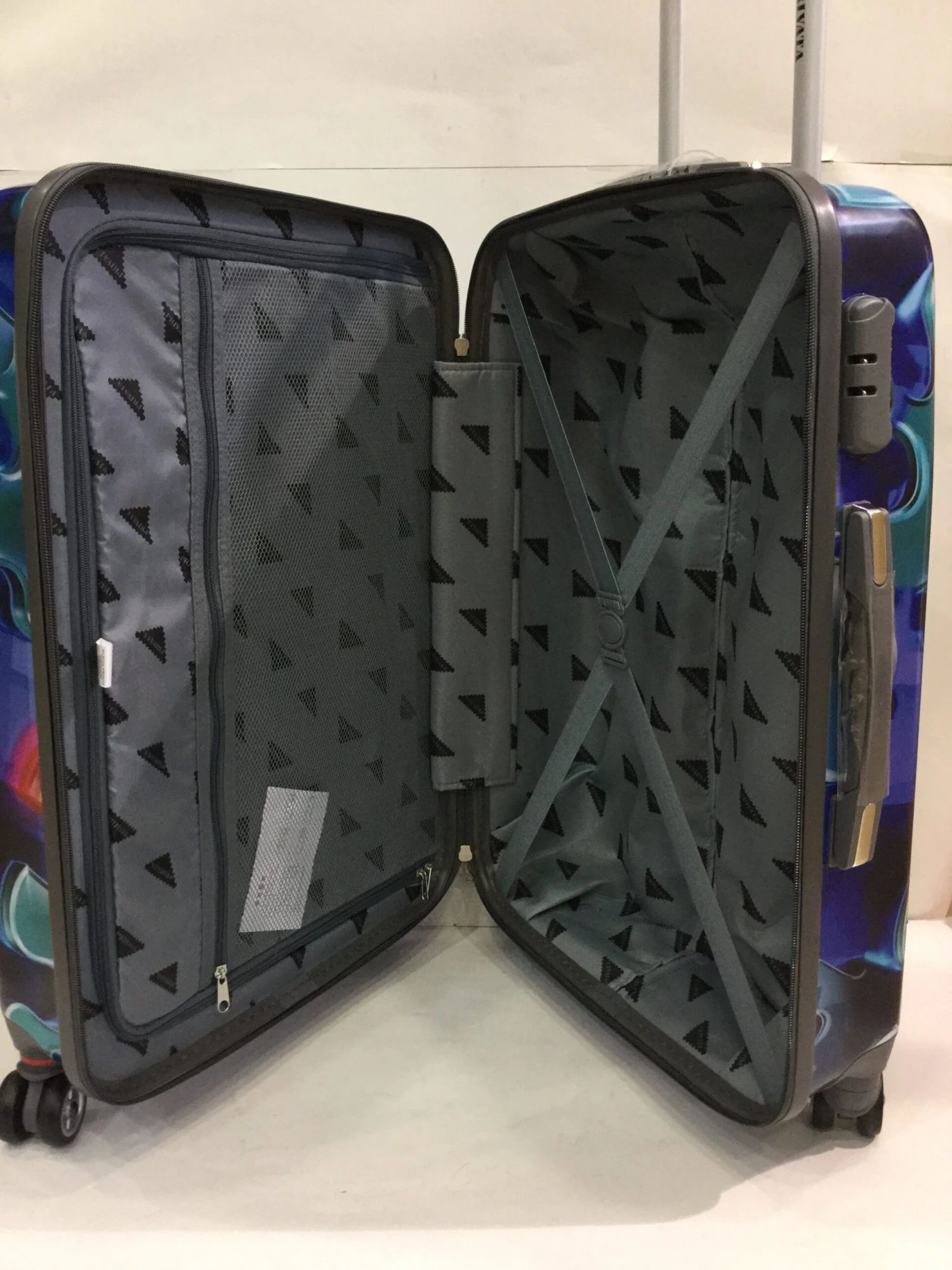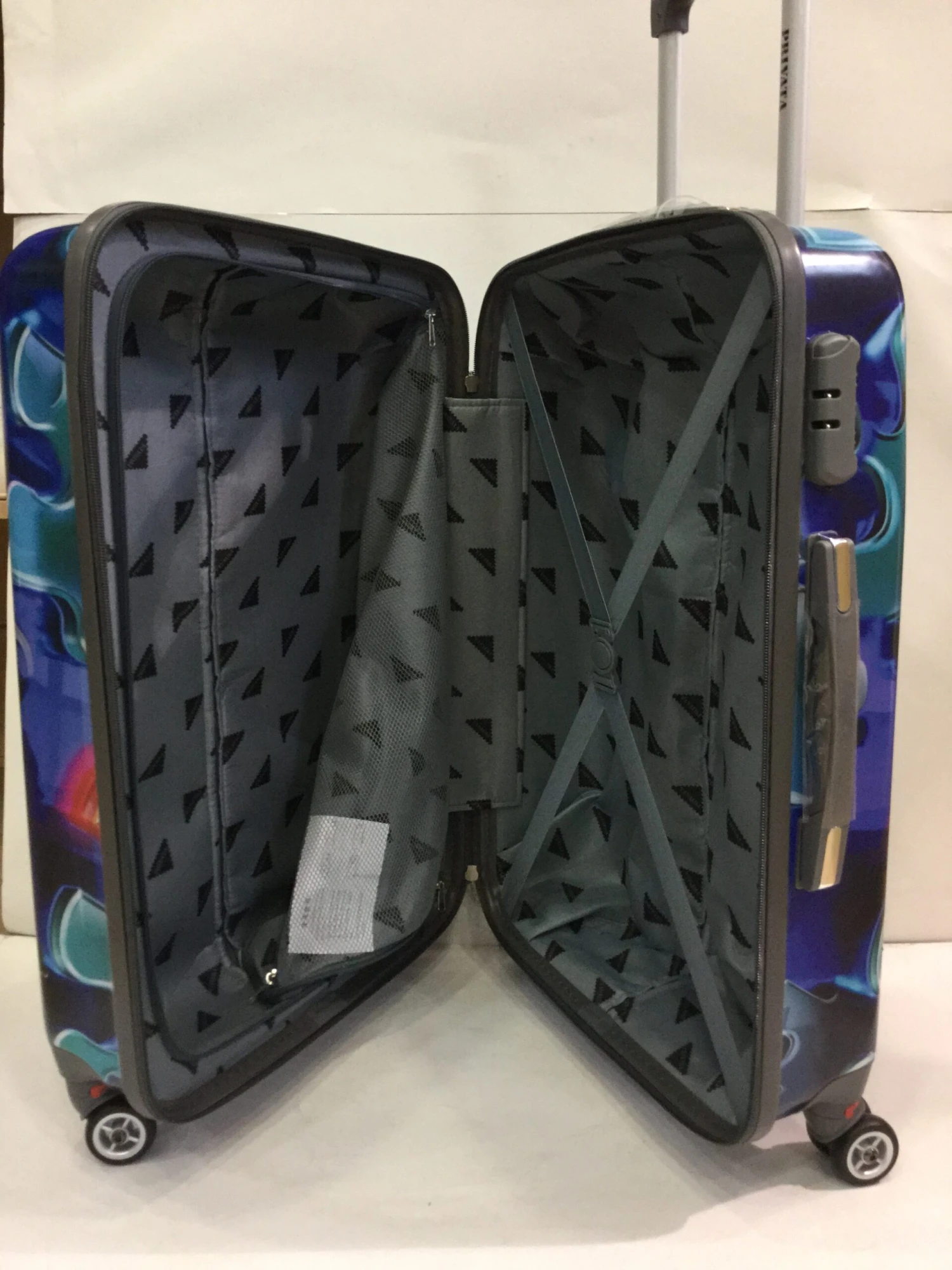 Trolley rÃgido grande 4 ruedas Privata con piezas puzzle color azul y naranja.