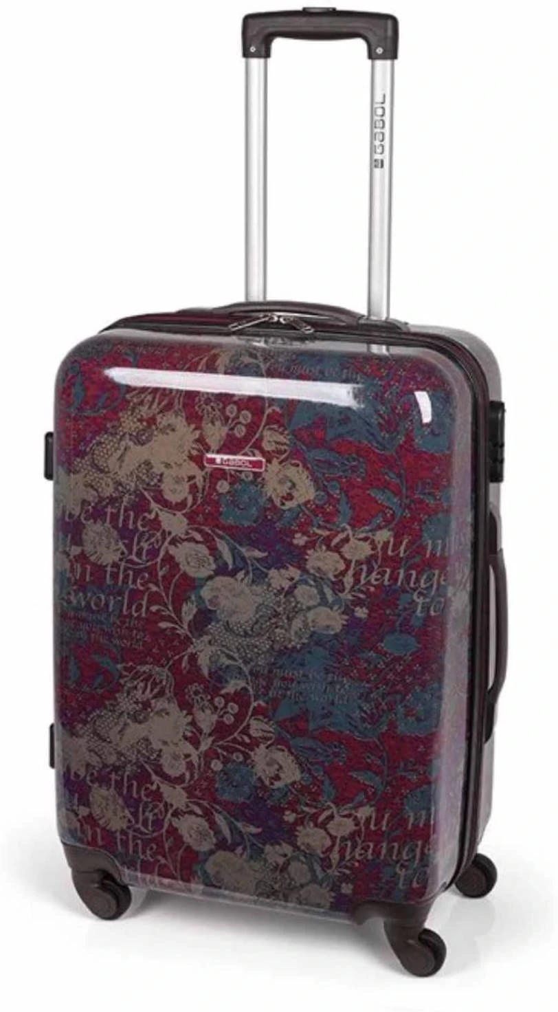 Maleta-trolley modelo feeling y fabricado en ABS+ Policarbonato de gran resitencia con estampado muy juvenil. El trolley tiene una apertura en la mitad con cremallera, una parte ajusta los objetos con cintas elásticas cruzadas y la otra parte cierra con bandeja separadora con cremallera, tambien dispone de bolsillos interiores.