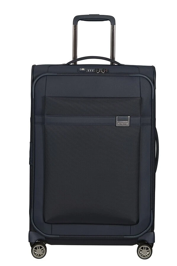 Maleta mediana expandible 4 ruedas Samsonite Airea color azul oscuro. Capacidad hasta 82 L. Pesa 2,4kg. Cerradura con bloqueo de codigo TSA.