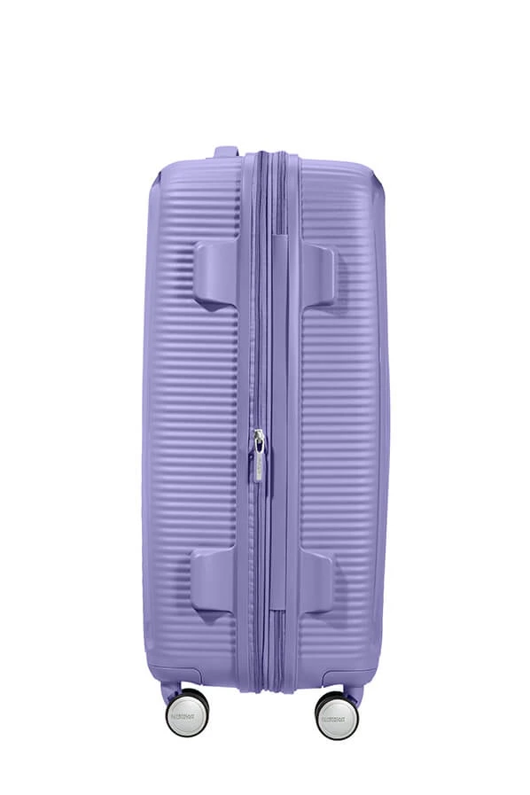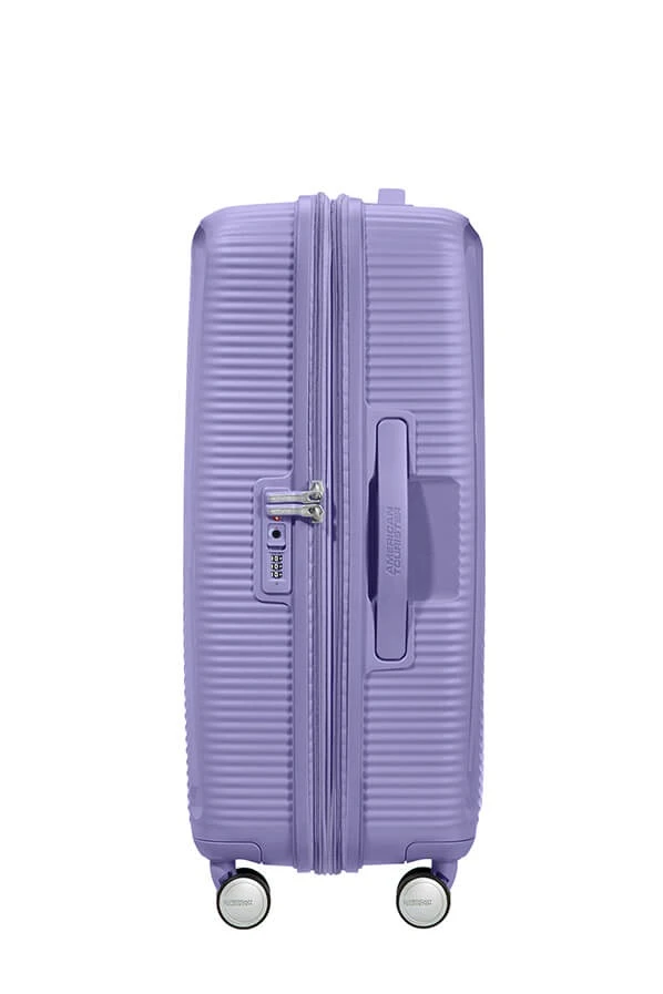 Maleta de tamaño mediano, de 67 cm. De la marca American Tourister, coleccion Soundbox, Fabricado en polipropileno,, un material resistente y ligero a la vez. Las 4 ruedas que tiene como apoyo lo convierten en muy cómodo en desplazamientos urbanos. Se abre y cierra con cremallera. Tiene cerradura de seguridad con combinación de 3 dÃgitos con función TSA. El interior se separa en dos partes, en un lado contiene y se cierra con bandeja separadora con cremallera y en el otro lateral con unas cintas elásticas cruzadas para sujeción del equipaje. El trolley tiene la posibilidad de expandirse lo cual le da una capacidad extra de gran utilidad.