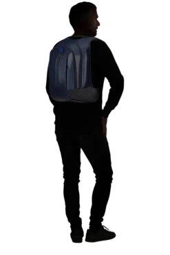Mochila para ordenador portatil de 17,3″, modelo Ecodiver de Samsonite. Tamaño grande, con capacidad para 26 ltrs.. Dispone de un compartimento central grande y un bolsillo delantero con organizador de oficina. Confeccionada en material reciclado PET, con revestimiento resistente la agua. Las cintas se ajustan de forma comoda y ergonomica a tu espalda y dispone de ajuste delantero al pecho. Color Azul.