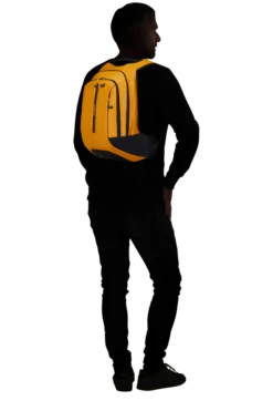 Mochila para ordenador portatil de 15,6″, modelo Ecodiver de Samsonite. Tamaño mediano, con capacidad para 19 ltrs.. Dispone de un compartimento central grande y un bolsillo delantero con organizador de oficina. Confeccionada en material reciclado PET, con revestimiento resistente la agua. Las cintas se ajustan de forma comoda y ergonomica a tu espalda y dispone de ajuste delantero al pecho. Color Amarillo.