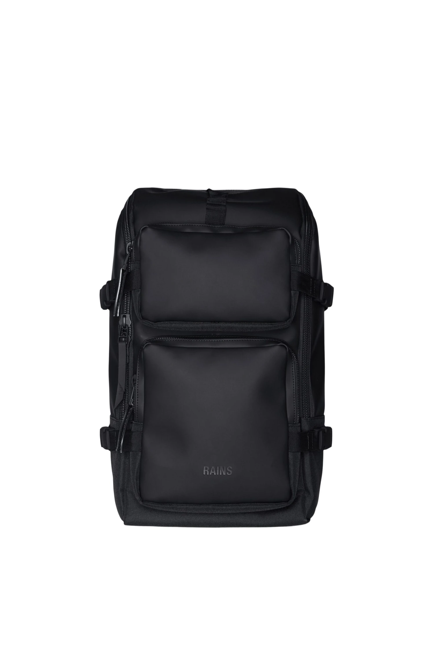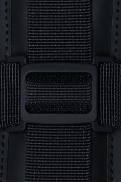 Mochila Rains de gran tamaño, compartimento principal único, dos bolsillos delanteros con cremallera. Bolsillo interior acolchado para ordenador de 13″.Confeccionado en material poliester con revestimiento de poliuretano. Apertura total muy amplia con cremallera, cierra con dos correas de compresion con hebillas. Cintas para la espalda acolchadas. Color Negro.