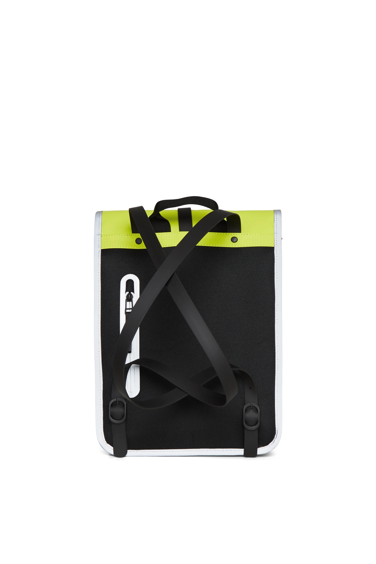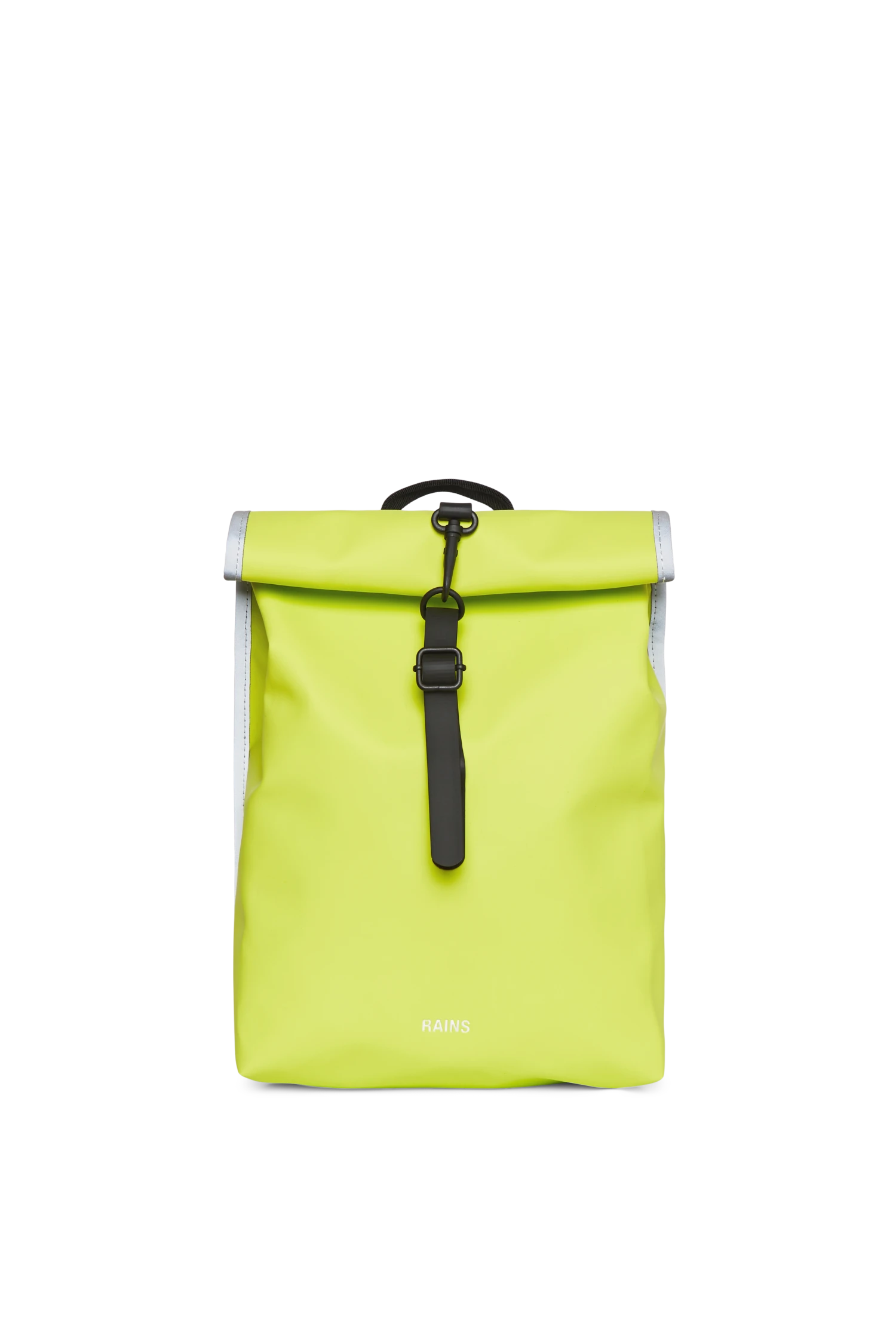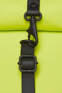 Rains Rolltop Rucksack Mini color lima es una versión más pequeña de la clásica mochila Rolltop Rucksack de la marca. El diseño de este bolso es una versión de Rains de una mochila ciclista, con detalles que tradicionalmente usa la comunidad ciclista. Confeccionada con el tejido impermeable caracterÃstico de Rains, esta mochila funcional tiene un cierre superior enrollable con una correa ajustable que está diseñada con un lazo para candado de bicicleta. Rolltop Mini tiene un compartimento principal y se completa con una parte trasera acolchada, correas ajustables para los hombros y herrajes originales de Rains. Color lima