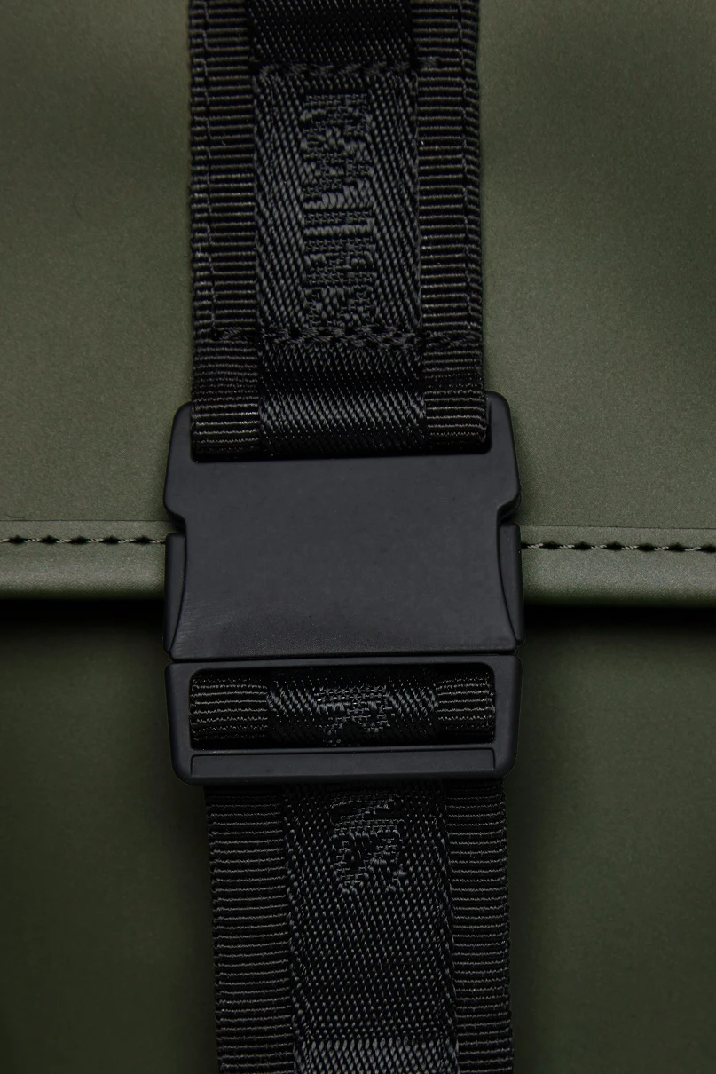 La mochila de la marca Rains Trail Mini verde es unisex, que ofrece muchas caracterÃsticas muy útiles. La mochila Trail Mini está confeccionada con el tejido de poliuretano impermeable exclusivo de Rains y está diseñada para brindar resistencia, durabilidad y una sensación de suavidad. La mochila es en color verde
