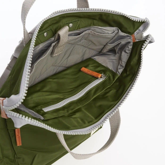 Mochila de la marca Roka London, modelo Bantry B. Tamaño pequeño con medidas 32 cm x 23 x 10 cm. y capacidad de 7,35 ltr. Confeccionado con materiales reciclados (PET), y aptas para veganos. Su material es repelente al agua. Lleva un bolsillo exterior central cerrado con cremallera. En el interior lleva compartimento acolchado para tablet y dos bolsillos con cremallera.Cierra con cremallera en la parte superior. las tiras de la espalda son de algodon para mas comodidad. Color Verde.