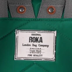 Mochila urbana modelo Bantry B de la marca Roka London de tamaño pequeña en color verde esmeralda con cierre de cremallera y de nylon más lona resistente. La mochila tiene un compartimento interior para ordenador además de otros dos bolsillos de cremallera. En el exterior hay un bolsillo de cremallera. Las correas son de algodón para una mayor comodidad.