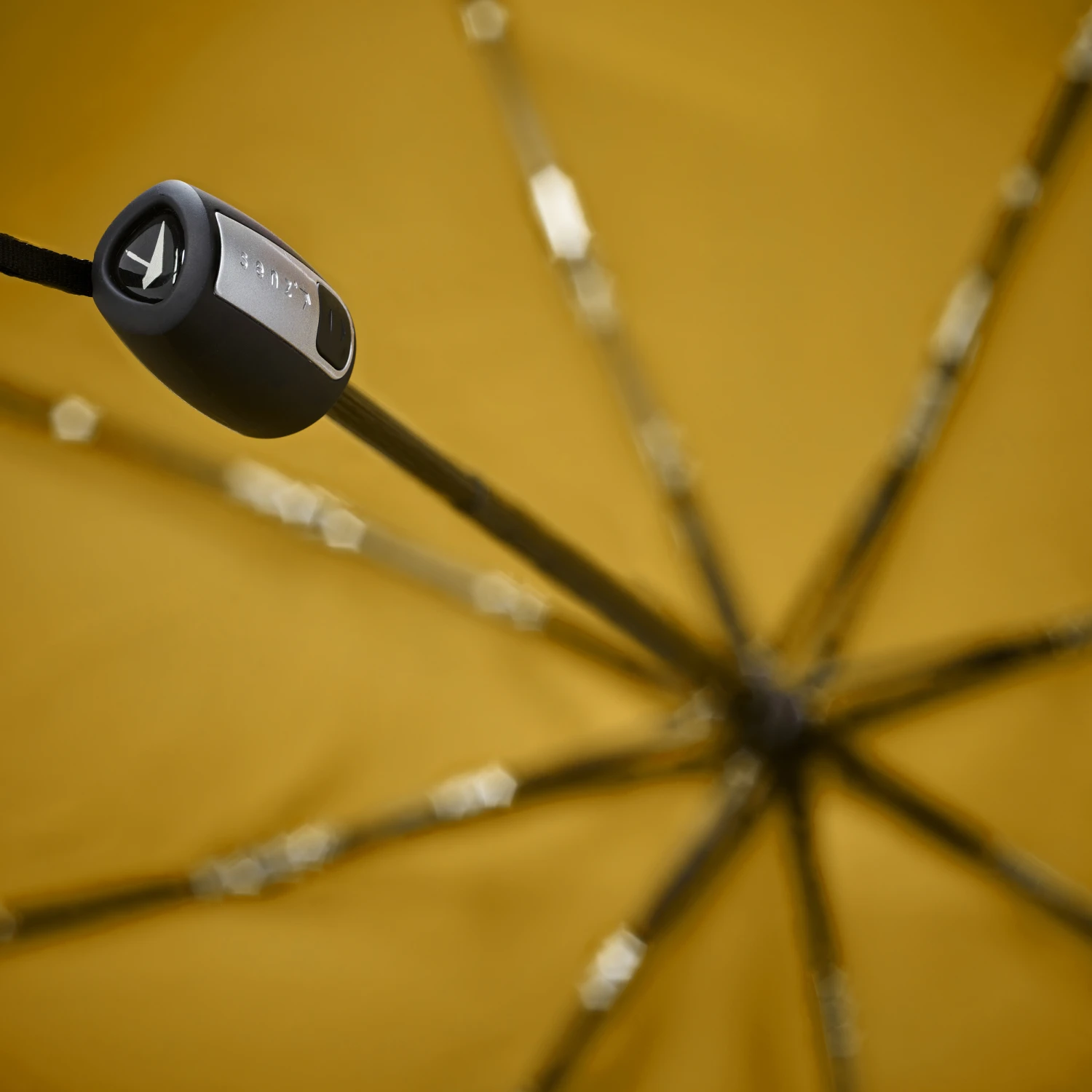Paraguas antiviento de la marca SENZ, modelo plegable mini automatico, confeccionado en acero . Su forma irregular está diseñada para resistir vientos de 80 km/hora . Tela con factor de proteccion 50+. Su medida cerrado es de 28 cm. Medida en abierto 36 cm por la parte mas pequeña y 68 cm por la parte mas larga. Automático abre-cierra. Pesa 360 gr. Color amarillo