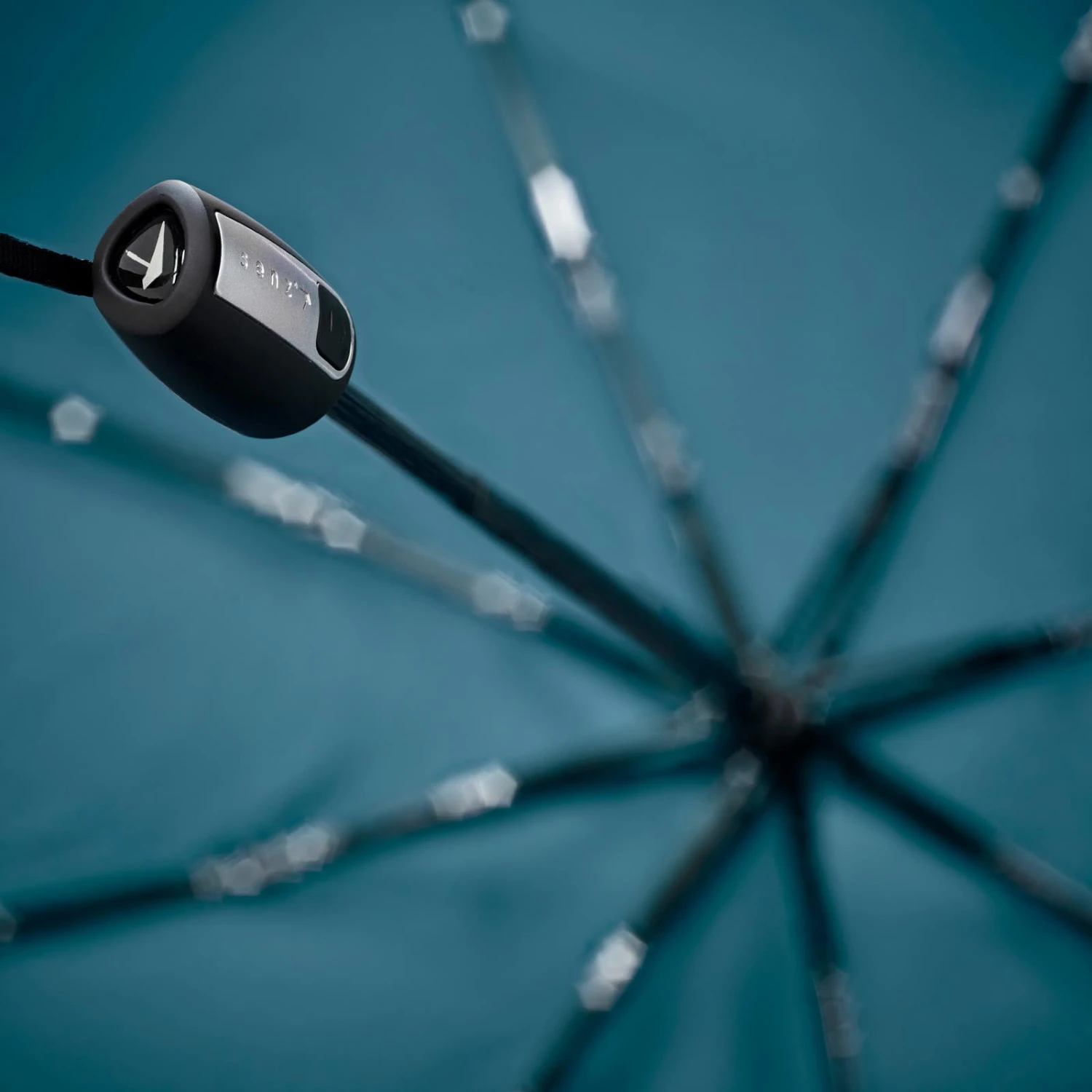 Paraguas antiviento de la marca SENZ, modelo plegable mini automatico, confeccionado en acero . Su forma irregular está diseñada para resistir vientos de 80 km/hora . Tela con factor de proteccion 50+. Su medida cerrado es de 28 cm. Medida en abierto 36 cm por la parte mas pequeña y 68 cm por la parte mas larga. Automático abre-cierra. Pesa 360 gr. Color azul.