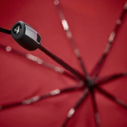 Paraguas antiviento de la marca SENZ, modelo plegable mini automatico, confeccionado en acero . Su forma irregular está diseñada para resistir vientos de 80 km/hora . Tela con factor de proteccion 50+. Su medida cerrado es de 28 cm. Medida en abierto 36 cm por la parte mas pequeña y 68 cm por la parte mas larga. Automático abre-cierra. Pesa 360 gr. Color rojo.