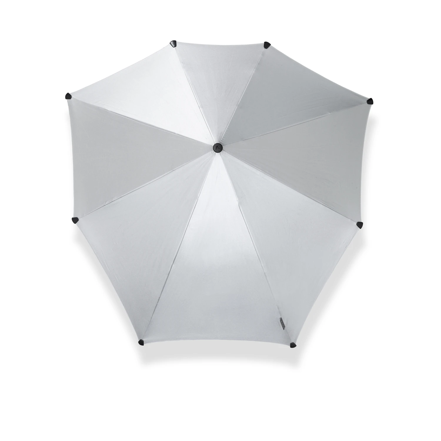 Paraguas antiviento de la marca SENZ, el original, confeccionado en aluminio . Su forma irregular está diseñada para resistir vientos de 100 km/hora . Tela con factor de proteccion 50+. Su medida cerrado es de 79 cm. Medida en abierto 36 cm por la parte mas pequeña y 70 cm por la parte mas larga. Peso 440 gr.Color palta reflectante.