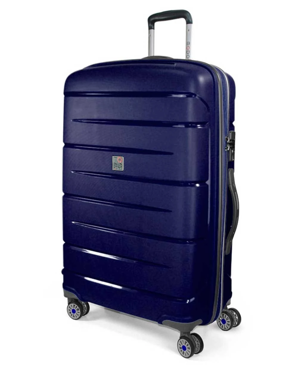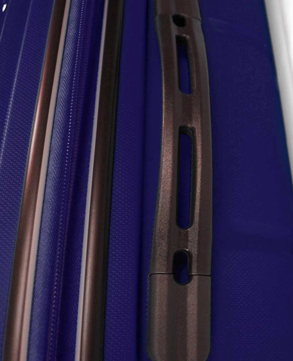 Maleta pequeña, tamaño de cabina, en color azul oscuro de Roncato modelo Starlight. El tamaño de cabina de esta maleta permite poder viajar en las aerolÃneas más destacadas sin necesidad de facturar. Las caracterÃsticas más destacadas son la gran resistencia ante golpes, ligera de peso y su resistencia al agua. El interior del trolley ofrece unos cómodos bolsillos contenedores para objetos y cintas de sujeción para organizar el contenido de forma adecuada. El diseño exterior es muy destacado, la maleta se apoya en 4 ruedas multidireccionales y un asa doble extensible en la parte superior. El cierre de la maleta en el lateral es de máxima seguridad. En la parte trasera posee un espacio para detallar el nombre del titular de la maleta.
