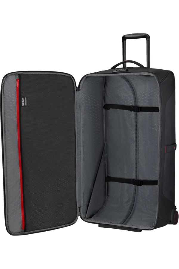 Trolley-bolsa de viaje en tamaño grande de 79 cm y 2 ruedas de la marca Samsonite modelo Ecodiver en color Negro. De gran capacidad , 122 ltrs, te permite usarla en tus viajes mas largos. Confeccionado en material PET reciclado totalmente impermeable.