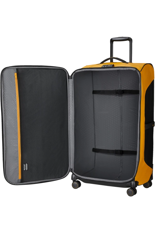 Trolley – Bolsa de viaje de Samsonite en color amarillo en tamaño grande con 79 cm y cuatro ruedas de apoyo.
