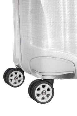 Trolley en color blanco de Samsonite modelo Lite-Locked en tamaño grande de 69 cm. La maleta está fabricada en policarbonato y su diseño permite que la maleta sea ligera y resistente. La cerradura es de candado TSA integrado para viajar con seguridad a aeropuertos de Estados Unidos. En la parte superior tiene un tirador ligero de doble tubo robusto y resistente. En el interior de la maleta está cerrada en ambos lados con cremallera y unas cintas elásticas de sujeción del contenido. El trolley se apoya en 4 ruedas dobles las cuales permiten un rodaje suave, silencioso y maniobrar sin esfuerzo alguno.